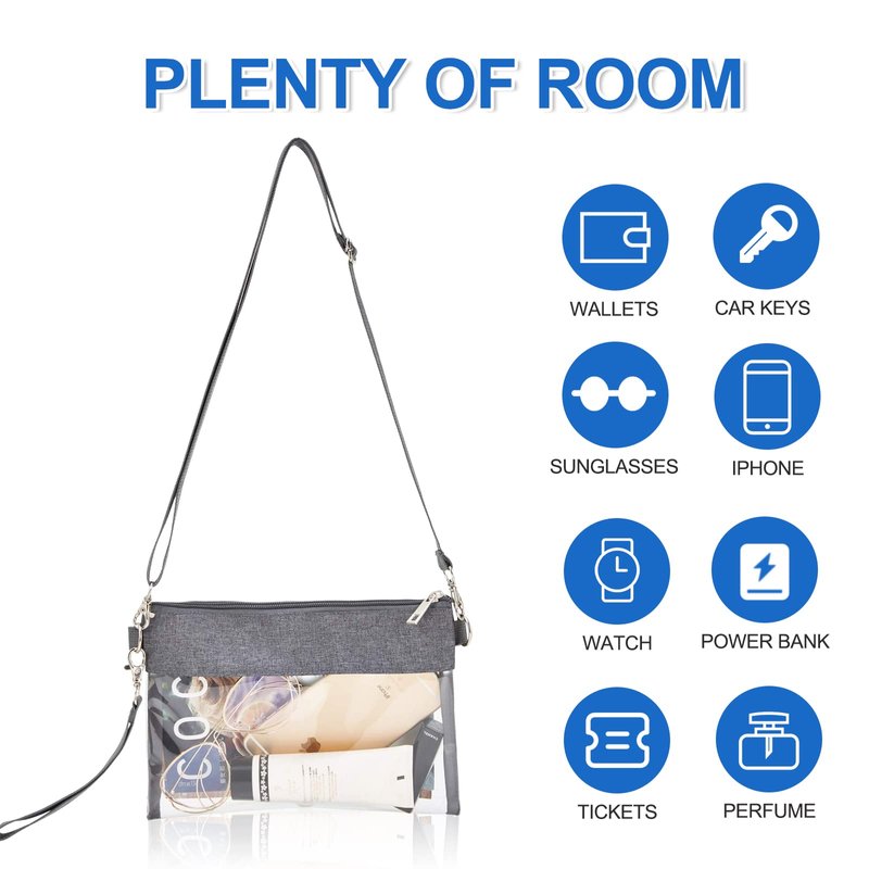 - 【Multi-purpose for All Situations】: Clear crossbody purse is completely stadium approved. You can go with it for stadium, concert, festival, raves, airport, any outdoor activities. It is also convenient for you to check everything you need to be ready.