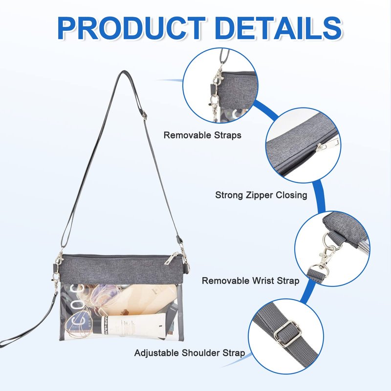 - 【Quality Material】: The clear crossbody bag helps protect your belongings in wet conditions with wrist straps and adjustable shoulder straps made of thick nylon. The shoulder strap and wrist strap can be removed.