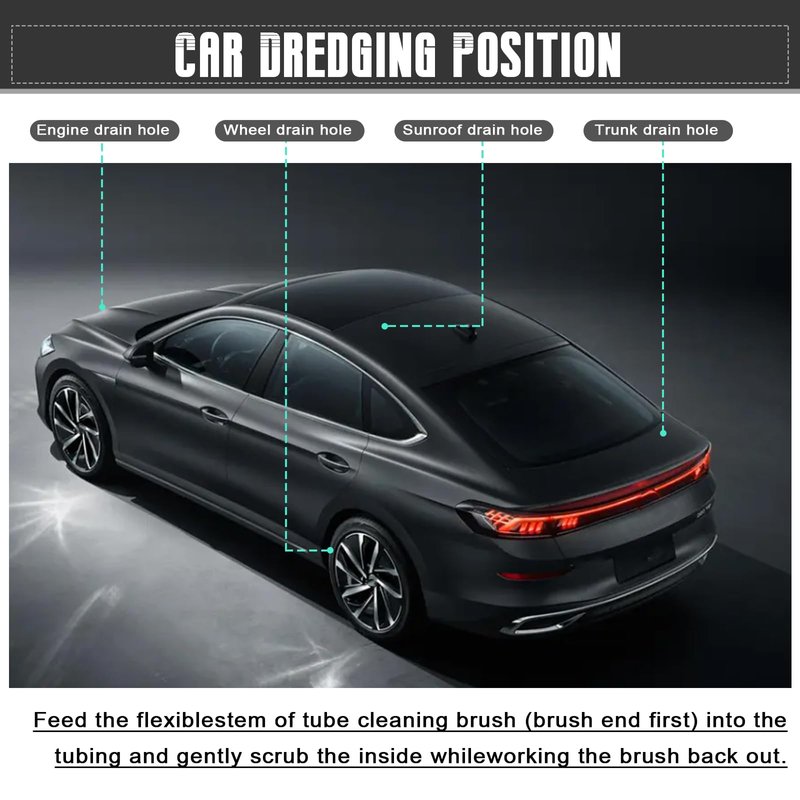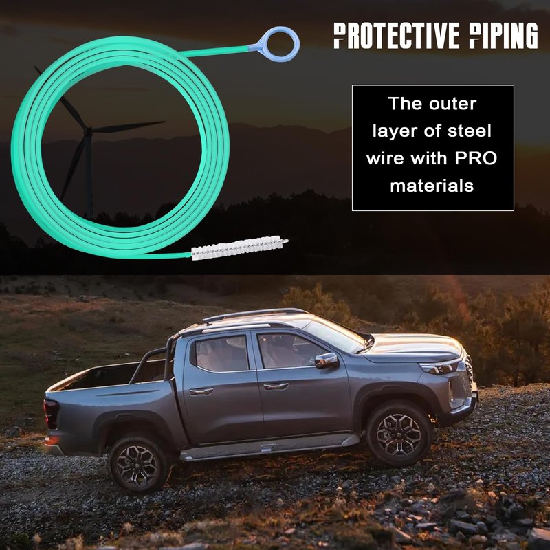 1.The overall length of this long pipe cleaner is 78 inches.2.The pipe cleaning brush is perfect for car sunroofs, car windshield wipers and more.3.This long pipe cleaner is flexible enough to be used even on curved pipes.4.This car pipe unclogging tool is made of nylon.5.Soft and scratch-free, easy to clean and reusable for a long time.