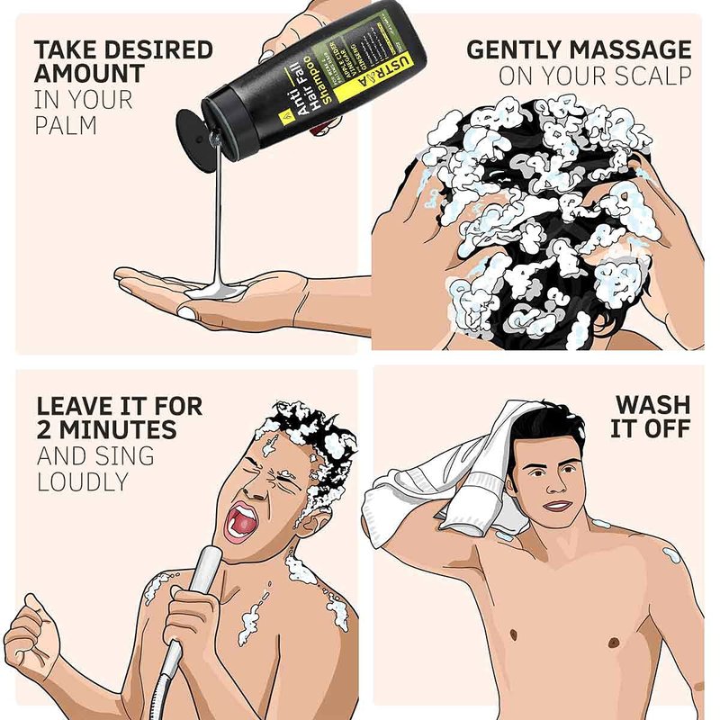 - How To Use: Pour out desired quantity on your palm. Spread evenly on your palm along with few drops of water and massage thoroughly on your scalp. Rinse-off in 1-2 minutes.