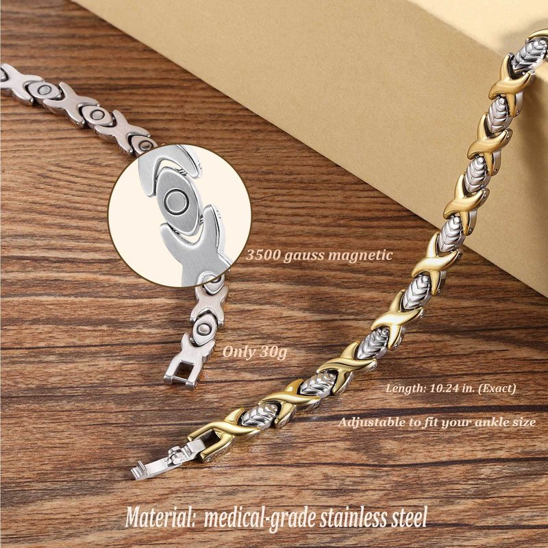 USWEL Ultra Strength Magnetic Anklet for Women - Ankle Pain Relief & Anti-Swelling Magnetic Therapy Anklet Bracelets for Women, Anti-swelling Magnetic Anklets Bracelets (Leaves)