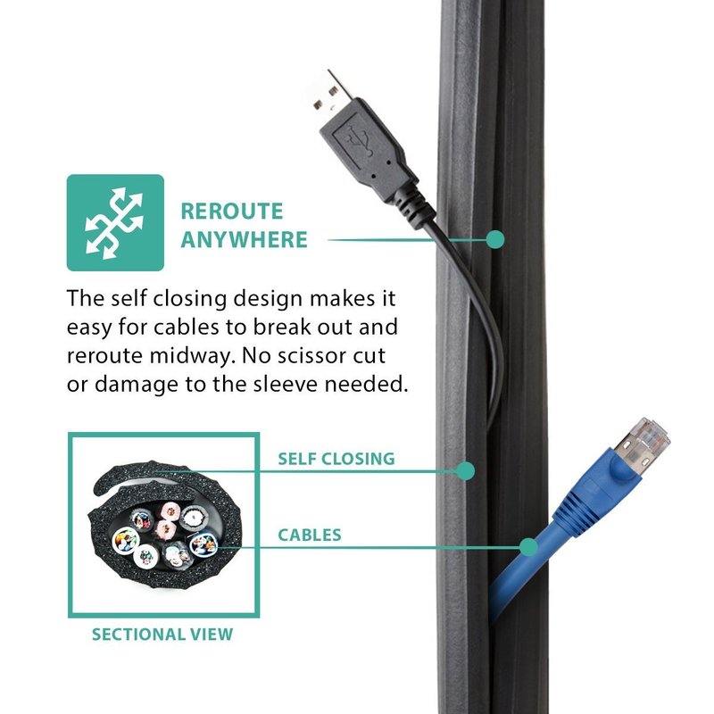 UT Wire Expandable Flexi Cable Wrap wraps around bundles of cables or cords to keep it organized. Made from a soft and flexible material, Flexi Cable Wrap leaves no plastic cut from sharp edges on your finger when inserting cords or extra complicated tools needed for installation. It is a smart expandable system that easily self wraps and conforms to bundle cords.
