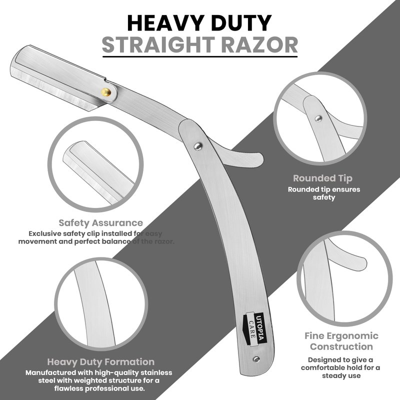 Utopia Care Professional Barber Straight Edge Razor Safety with 100-Pack Derby Blades - 100 Percent Stainless Steel (Silver)