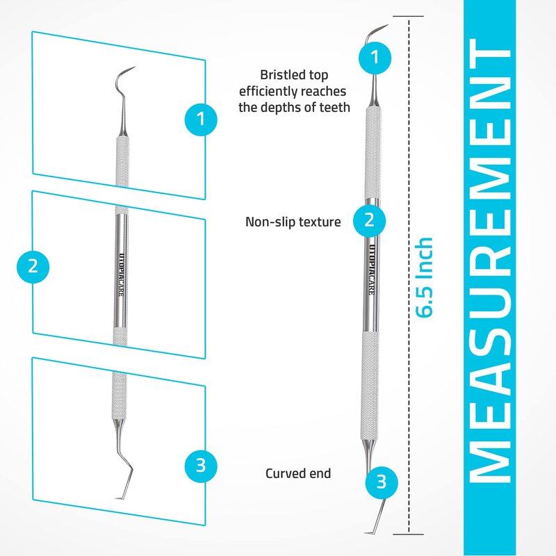 Utopia Care Professional Dental Tartar Scraper Tool - Dental Pick, Double Ended Tartar Remover for Teeth, Plaque Remover, Tooth Scraper (6.5 Inch, Silver, 1)