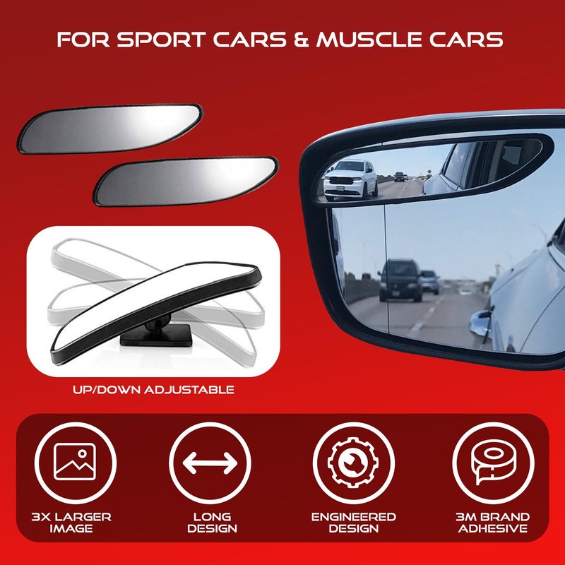 - FOR SPORTS CAR & MUSCLE CARS: This 5.3” x 1.3” long blindspot mirror is ideal for your sports car and other show cars because of its sleek and stylish design. But if you want a blind spot mirror for truck, Utopicar also offers that.