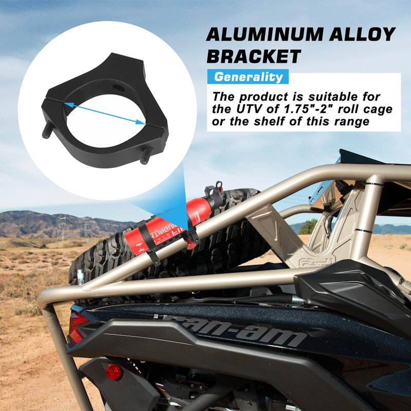- 【Fitment】This fire extinguisher mount holder are compatible with UTV Polaris Kawasaki Can Am Maverick Kymco Arctic Cat and almost all automotive, RV, and kitchen etc.