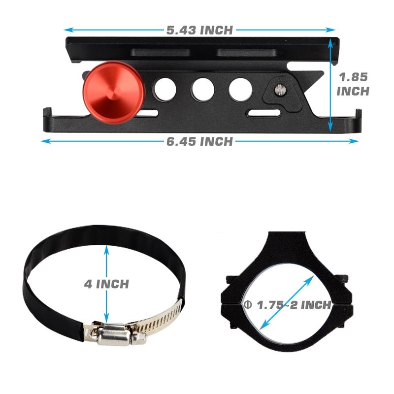 - 【Package Inclued】1x fire extinuisher holder (base and separable holder) ; 2x adjustable rings ( for holding fire extinguisher .); 2x mounting bracket(fire extinguisher and the rest for mounting the device onto your roll bar).