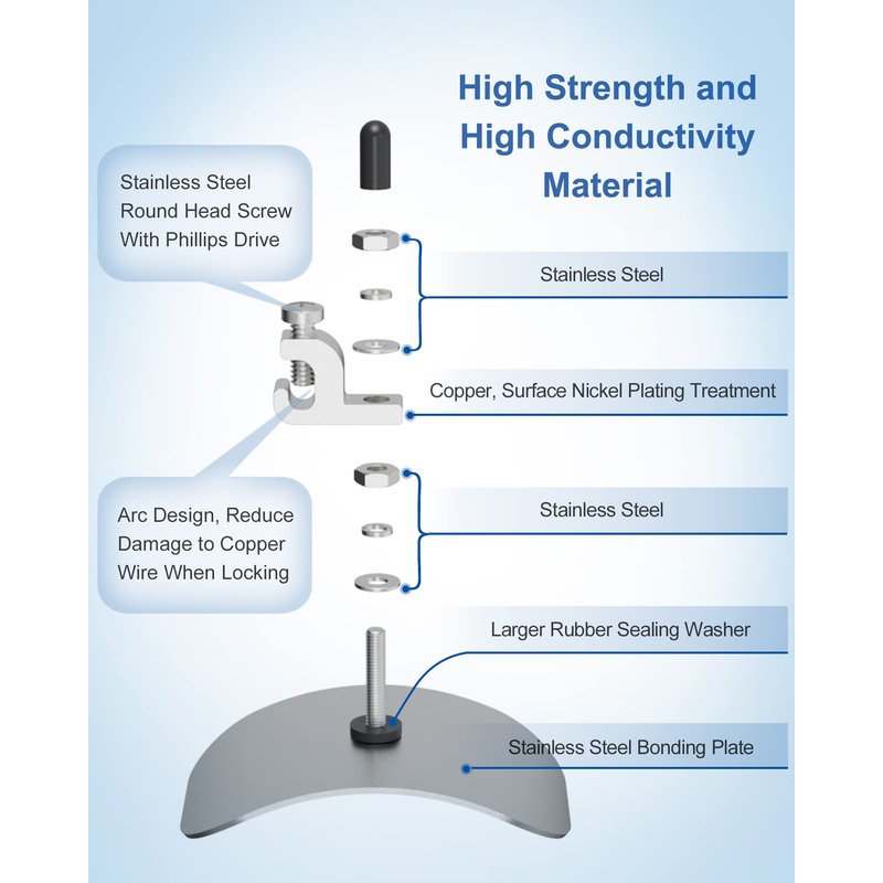 - HIGH-QUALITY CONSTRUCTION: The bonding plate is made from non-corrosive stainless steel. Bonding lug is made from high strength and high conductive copper, surface nickel plating treatment. They are durable, corrosion resistant and more reliable for use.