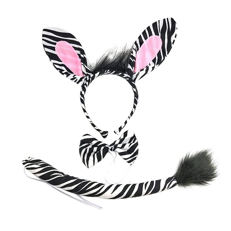 UUYYEO Zebra Ears Headband Tail and Bowtie Party Hair Hoop Cosplay Head Band Halloween Hairband Cute Hair Band Animal Costume Accessories