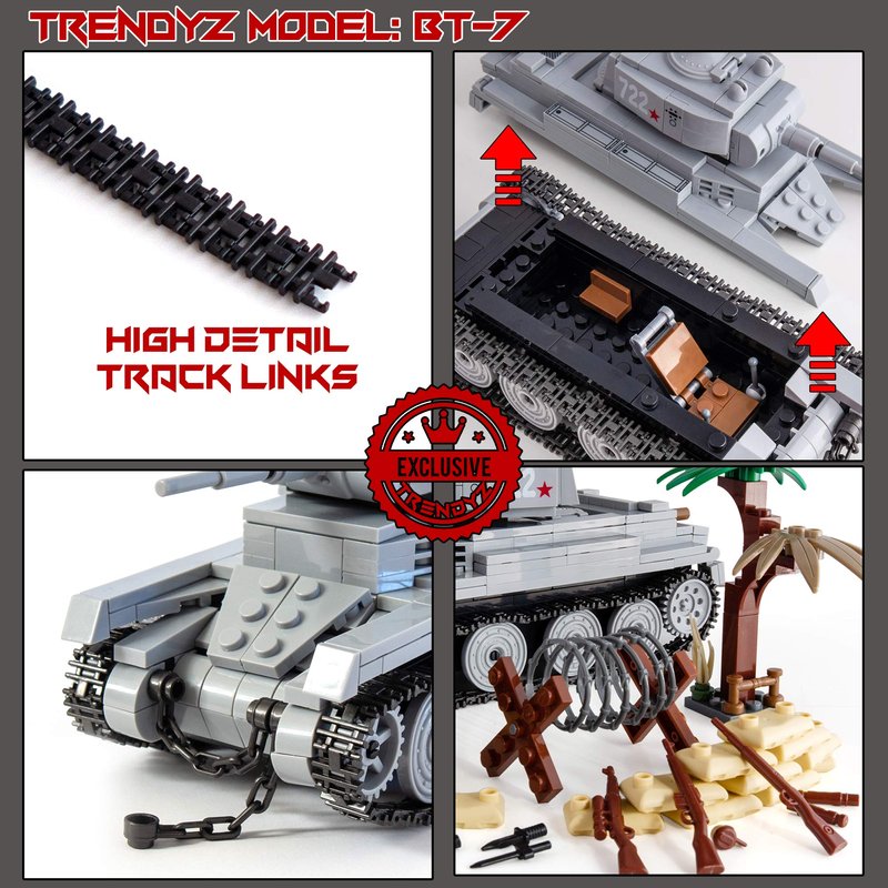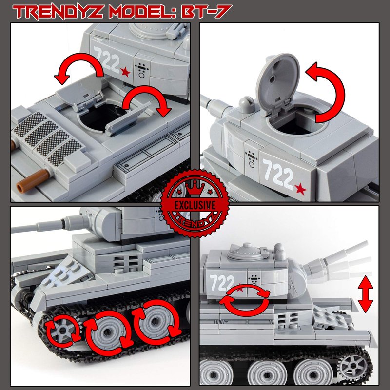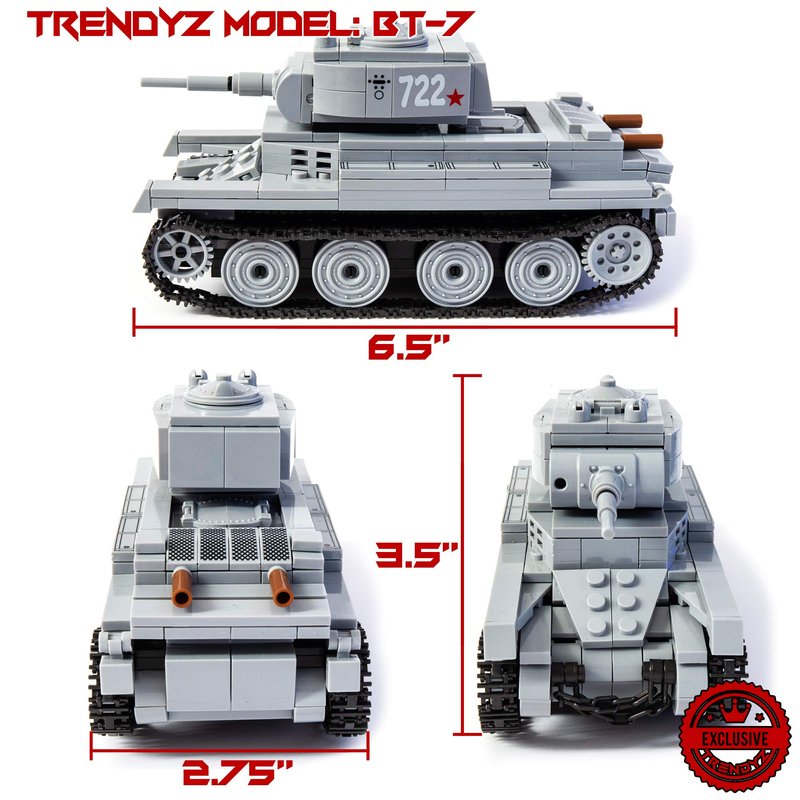 A high quality toy building set, WWII BT-7 Light Tank comes unassemble with over 480+ pieces. Made with high quality non-toxic material. What you see is what you will get. It comes with step by step detail instruction manual. Item comes in poly bag. Recommended Ages 13 & Up.