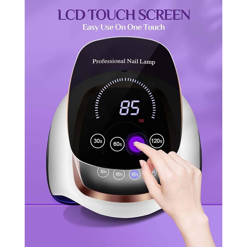 - [LCD Touch Screen and Easy Use On One Touch] The lining is embedded with both UV and LED light beads, which make this gel UV led nail lamp perfect for curing not only regular polish but also capable of curing most of the gel nail polish kit with UV light regardless the brand or type. The motion sensor delivers a fully automated, touch-free curing experience without pressing any key.