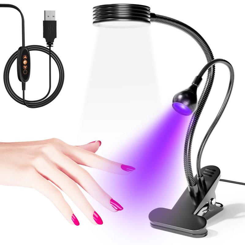 - 👑【360° Rotatable Gooesneck】Our uv light for nails has flexible gooesneck and securing clip.UV lamp for gel nails can be bent in 360 degrees.The height and direction of led nail light for gel nails can be adjusted to any desired angles for manicure practice.Gel nail polish uv light with securing clip,can be fixed on the desktop tightly and ensure your operating process smooth and stable