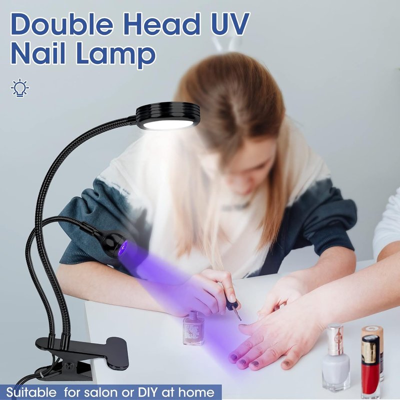 UV light for nails is made of aluminum alloy, with 3W led lamp beads, double heads (Led Light & UV Lamp), 360 degrees angle gooesneck and