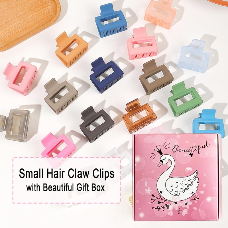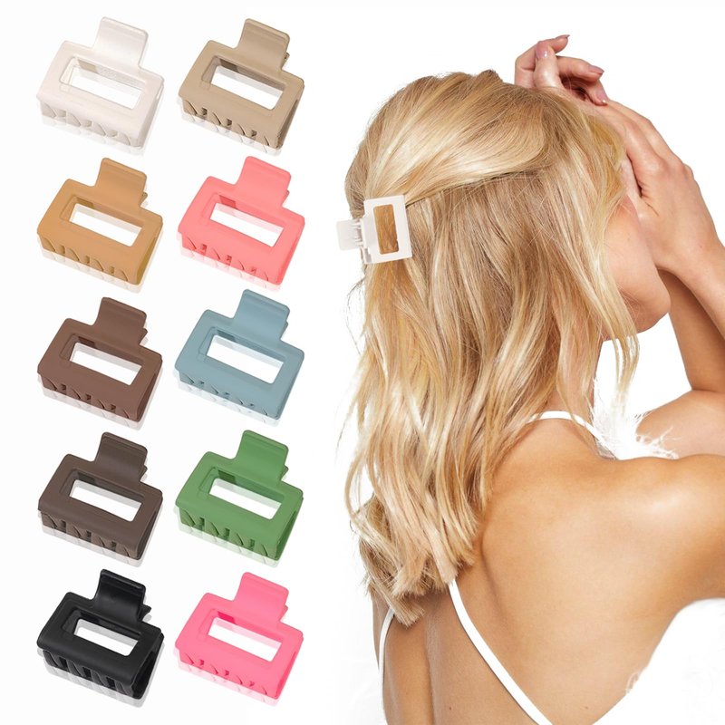 UVANKAUP Small Claw Clips for Thin Hair - 1.6" Medium Hair Claw Clips for Women Girls | Matte Rectangle Small Hair Clips | Non-slip Small Claw Hair Clips | Hair Jaw Clips with Gift Box, 10 Pack