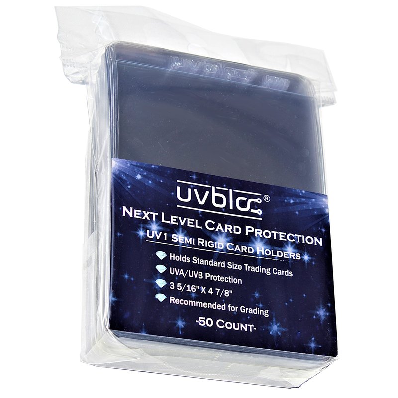 UVBLOC Semi Rigid Card Holder Sleeves (50 Pack) PSA Grading Saver Storage Protector Cases for Trading Baseball Basketball Football Pokemon Sports Cards