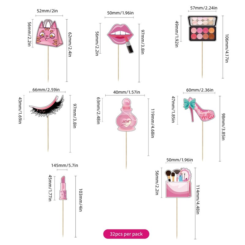 - Wide Range of Application: Cake top decorative supplies can match multi-style cake, will be the most suitable ornaments for cupcake, cake, dessert, fruit pie, etc. Designed in a variety of styles of makeup cake toppers to meet your make up theme parties decorative needs. Fit for family gatherings, birthday parties, baby showers supplies, etc