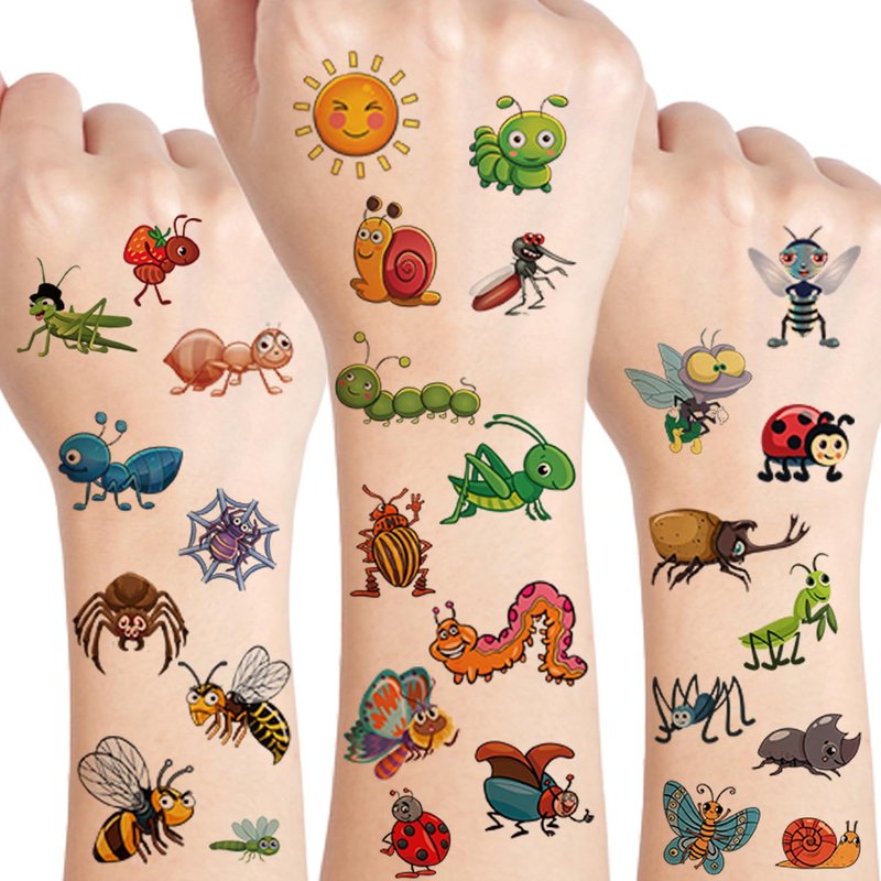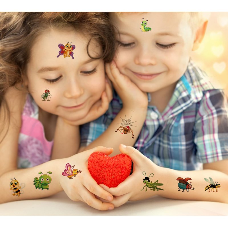 - 【 INSECT TEMPORARY TATTOO THEME】:Let your kids start a party experience like no other with these bug tattoos Whether they're dressing up for a themed party or simply adding a touch of fun to their day-to-day activities.These bug temporary tattoos are a great way to spark joy in their hearts.