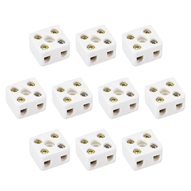 uxcell 2 Way Ceramics Terminal Blocks High Temp Porcelain Ceramic Connectors 21.5x19.5x14.2mm for Electrical Wire Cable 10 Pcs