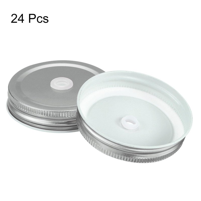 uxcell 24Pcs Mason Jar Lids with Straw Hole, 70mm Tinplate Canning Lids Fits Regular Mouth Mason Jar, Drinking Lids Set Reusable for DIY, Drinking, Daily Food Storage, Silver