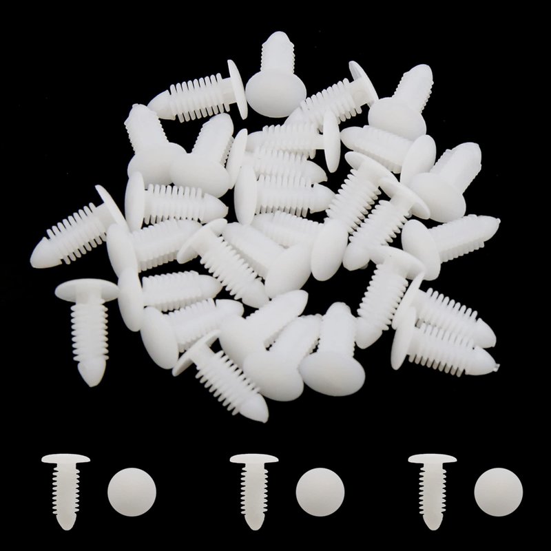 - Package Content: 30 x Plastic Rivets; Fit Hole Size: 7.5 x 6.5mm/0.30" x 0.26"(L*W); Head Diameter(max.): 12mm/0.47"