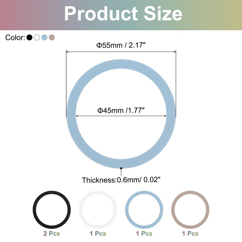 - [SIZE & PACKAGING]: The size of magnet ring is 55 x 45 x 0.6mm / 2.17 x 1.77 x 0.02 Inch (OD x ID x T), and the package includes 5pcs of magnetic adapter ring(1pcs white, 1pcs gold, 1pcs blue and 2pcs black) with 1pcs alignment guide