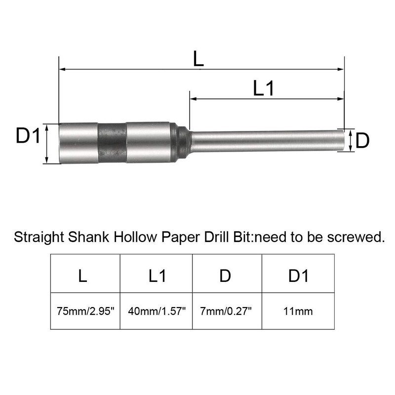 uxcell 7mm Paper Punch Drill, Straight Shank Hollow Bit Tool, for Hole Puncher Punching Machine