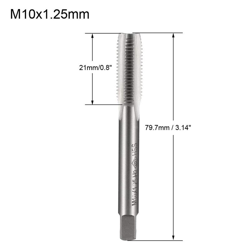 - Thread Size: M10 x 1.25mm. High-speed steel metric taps are with high hardness and toughness for wear resistance, well suited for general purpose applications.