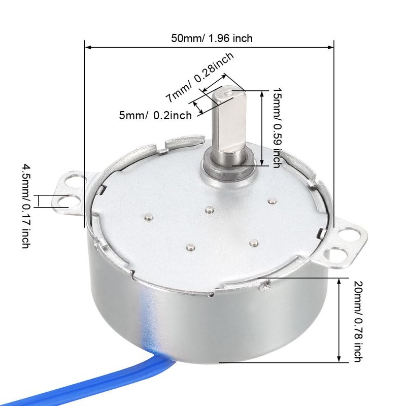 - [Specification] - Voltage: AC 100-127V; Speed: 2.5-3RPM; Frequency: 50-60Hz; Power: 4W; Direction: CW/CCW; Torque: 8 kgf.cm; Wire Length: 40cm/ 15.7 inch.