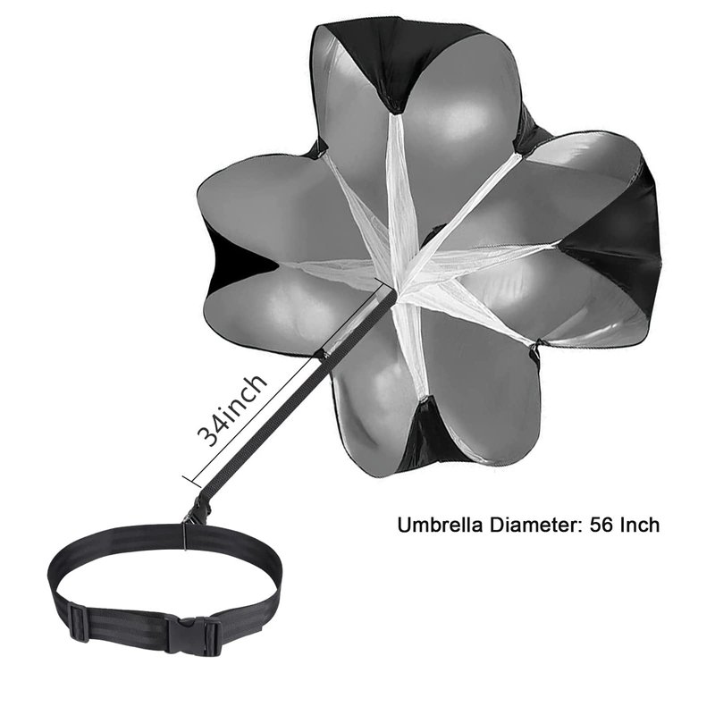 - 🏃UPGRADE ADJUSTABLE BELT - This resistance parachute is with adjustable waist sizes fits most athletes, 360° rotation belt with free motion ring allows for movement in any direction, Quick-release belt buckle allows training with acceleration bursts.