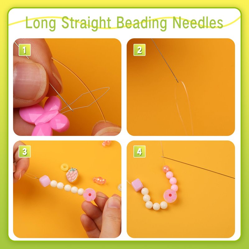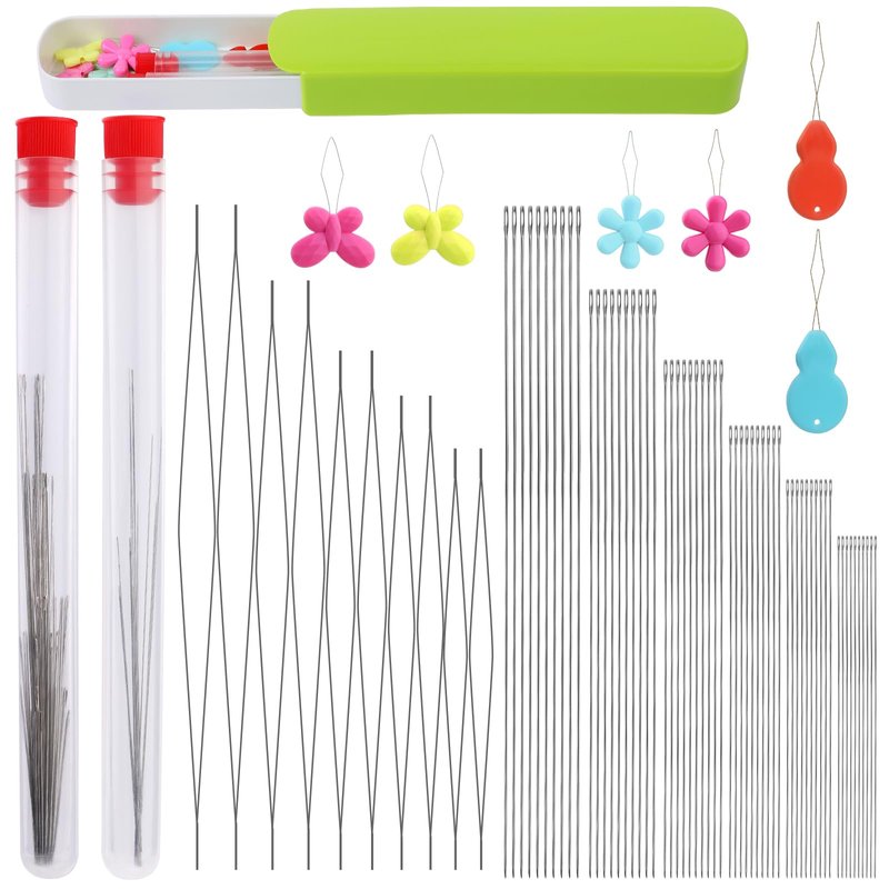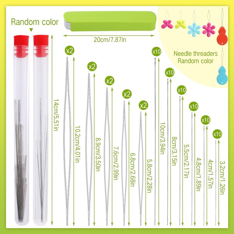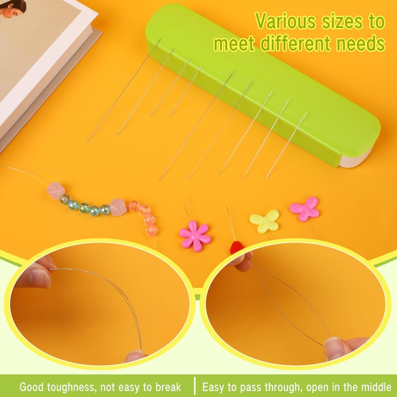 - EASY STORAGE: This beading supplies set comes with 2 needle bottles and a nice green storage box. The large eye beading needles and long straight beading needles are in separate bottles for easy use and storage. When you're done using your beading tools, put them in the storage case so they won't get lost.