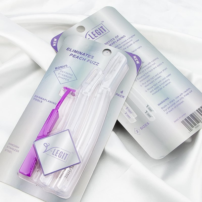 - 💜 ELIMINATE PEACH FUZZ - Effectively remove facial hair in a matter of minutes. Two sizes of blades for controlled Dermaplaning. The longer blade is best for large areas while the shorter blade is for precision. Bonus defining eyebrow shaper is designed to be delicate around the eye area.