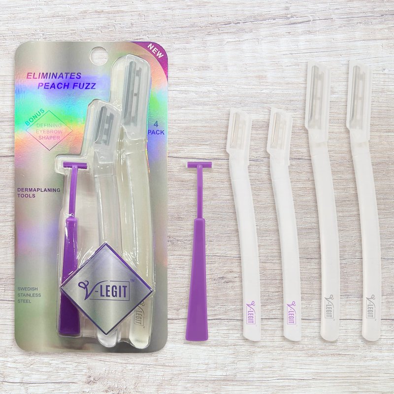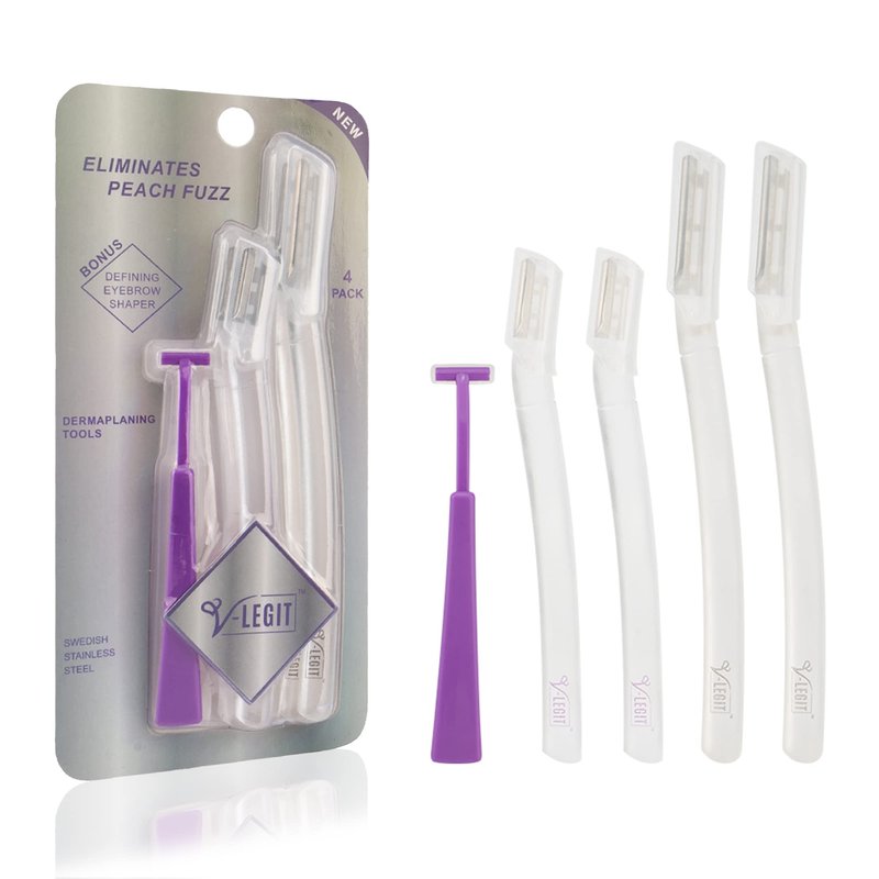V-LEGIT Dermaplaning Tools - Exfoliating Facial Razor Dermaplane for Women & Men Shaver to Exfoliate Refresh the Skin Peach Fuzz Eyebrow Hair Removal Blade 4 count Bonus Defining Shaper