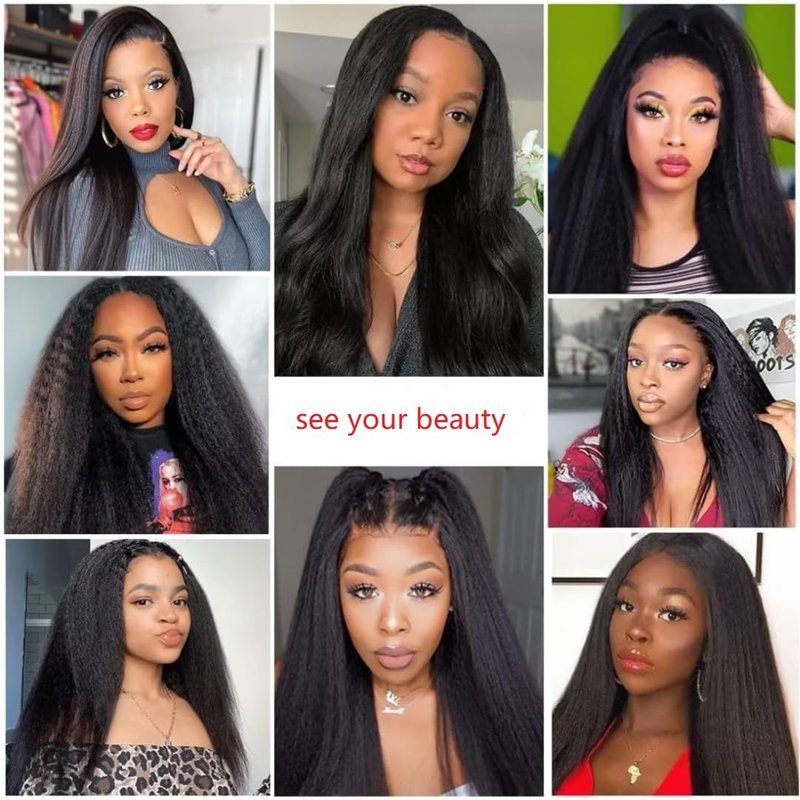 - 🎀Yaki Straight V Part Wig Human Hair Material:180 density virgin v part human hair wigs cut from One Donor,Full Cuticle Aligned,Can Be Dyed,Permed,Bleached,Highlighted,Straighten or Styled As Your Own Hair.Bouncy,soft and comfortable