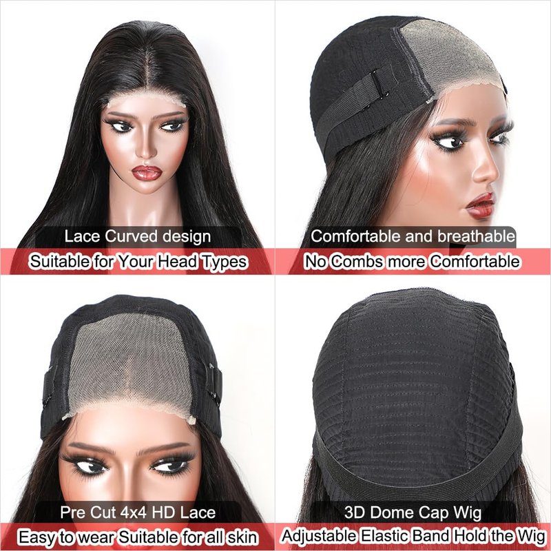 - 4x4 HD Pre-Cut Lace: Swiss 4x4 HD Pre-Cut Lace, Curved Design, better fits the head, Pre-Plucked Natural Hairline, and Pre-Cut Cace by the Special Technical Scissor to Make Sure the Edge is Stronger and Neater. You Don't Need to Spend Time Cutting It.