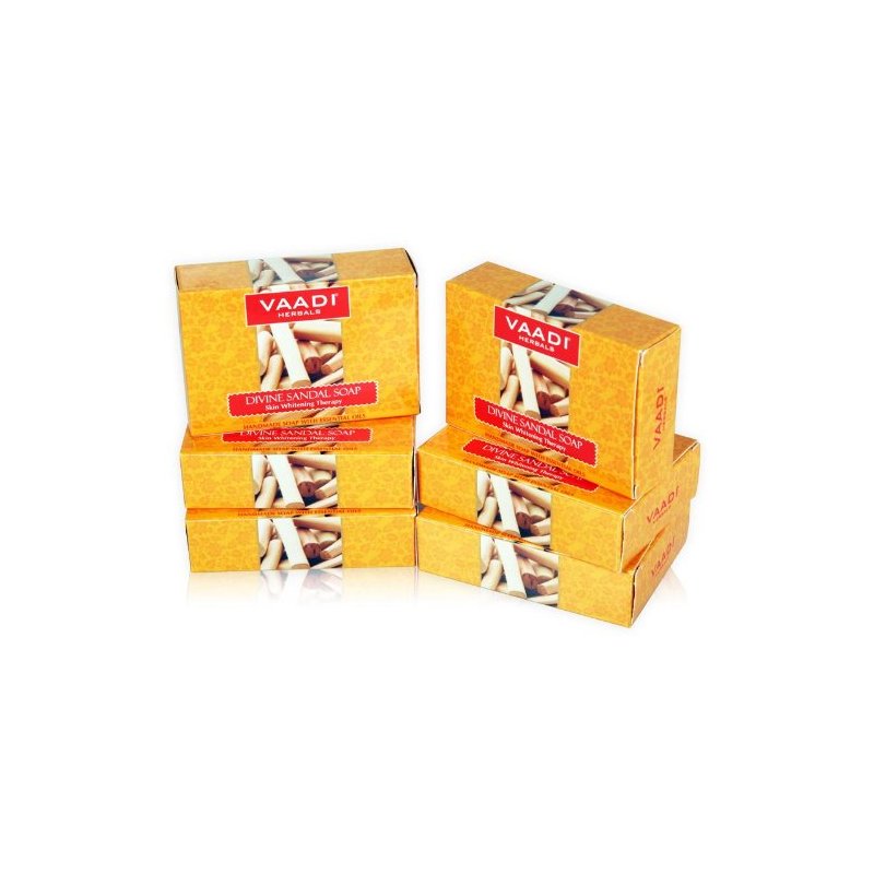 Vaadi Herbals Sandalwood Oil Bar Soap - Handmade Herbal Soap with 100% Pure Essential Oils - ALL Natural - Each 2.65 Ounces - Pack of 6 (16 Ounces)