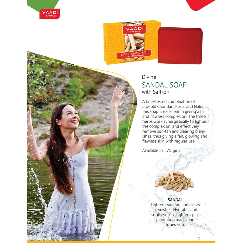 Vaadi Herbals Sandalwood Oil Bar Soap with Saffron and Turmeric Extracts - Handmade Herbal Soap with 100% Pure Essential Oils - ALL Natural - Each 2.65 Oz - Pack of 3 (8 Oz)