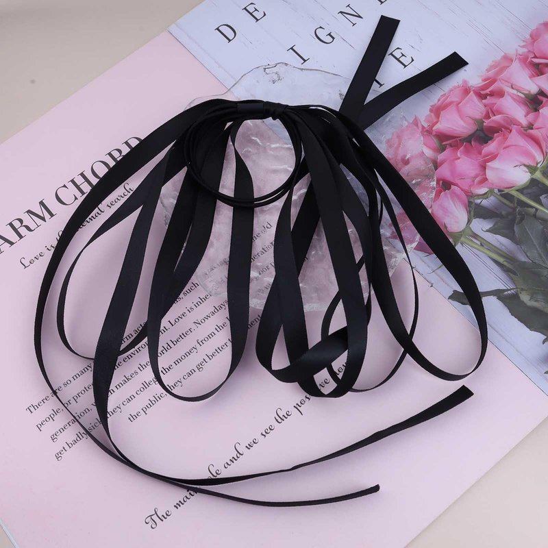 Vacaonio Black Long Ribbon Bow Hair Ties Rope Elastic Silk Satin Bow Hair Scrunchies Rope Ribbon Bow Hair Scrunchies Bowknot Ponytail Holder Hair Tie Decorative Hair Accessories for Women