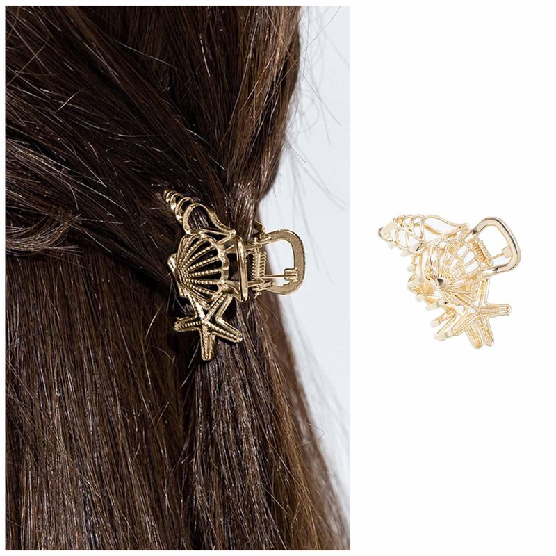 Vacaonio Minimalist Gold Small Hair Claw Clamp Non Slip Hairclips Jaw Starfish Shell Hairclip Barrette Medium Thick Hair Claw Metal Gold Holder Hair Clips Decorative Hair Accessories for Women