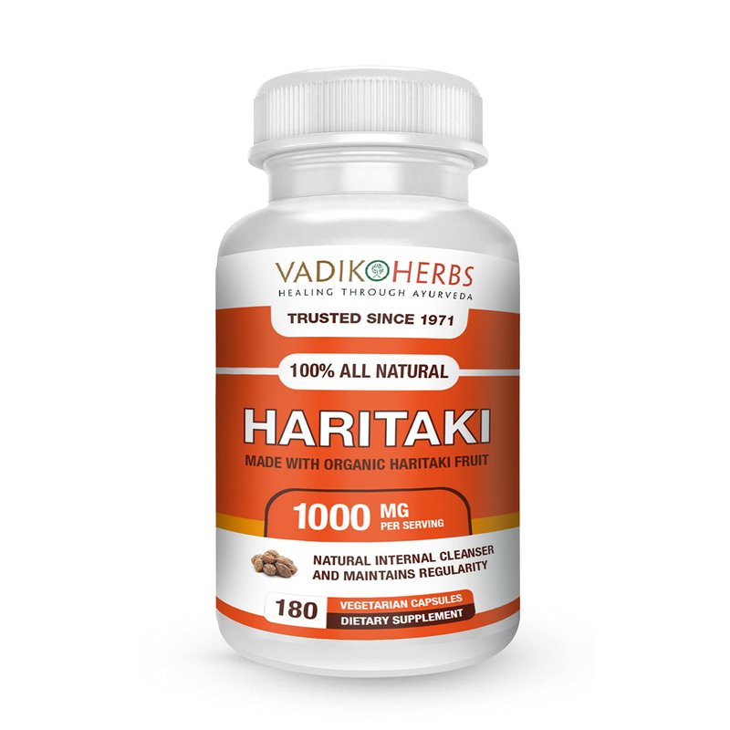 Vadik Herbs Certified Organic Haritaki (Terminalia chebula) | Made in USA | Wildcrafted and Safety Tested (180 Vegicaps)