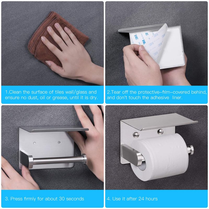 - MATERIAL : VAEHOLD adhesive toilet paper holder constructed by 304 stainless steel, rust and corrosion resistant. supply long-lasting strength and use for years to come.