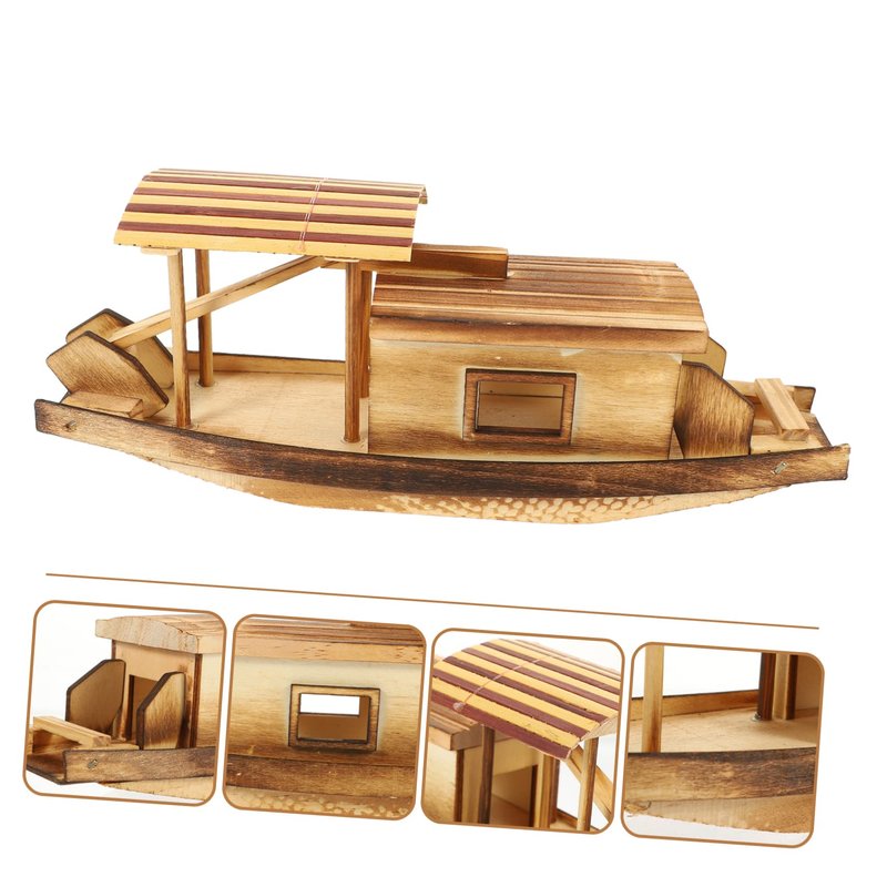 woody toy Exquisite workmanship, lightweight, this wood canoe ornament can be placed on the desktop safely and stably, perfect as home decor.wood boats A fishing boat decor in Chinese culture is unique and can be given as a perfect gift to friends and relatives