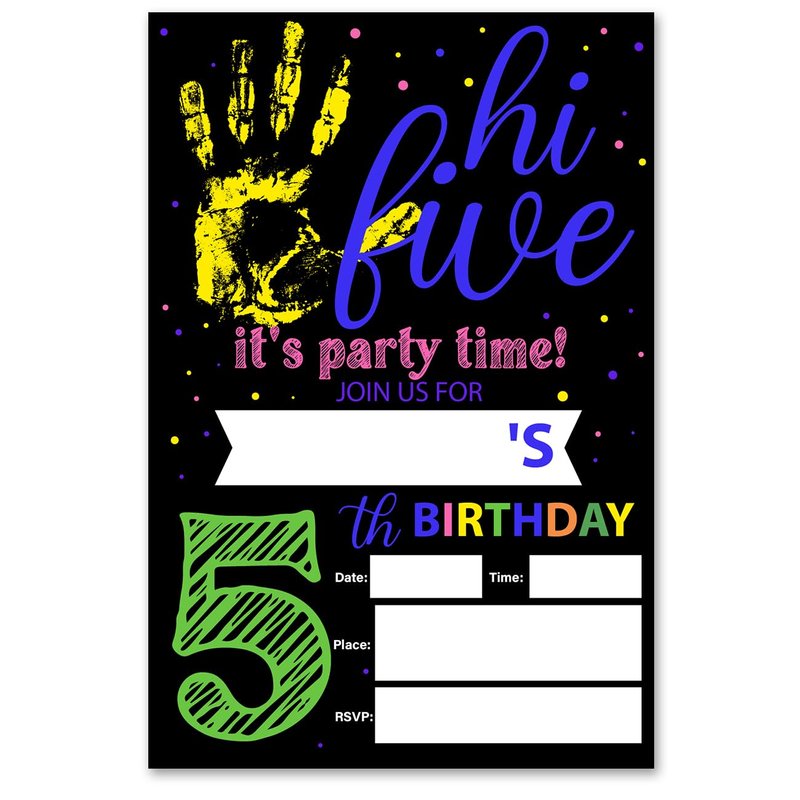 VAHATAN Hi Five 5th Birthday Party Invitations 20 Packs 5 Year Old Birthday Invites With Envelopes Colorful 5th Birthday Fill in Invite Cards