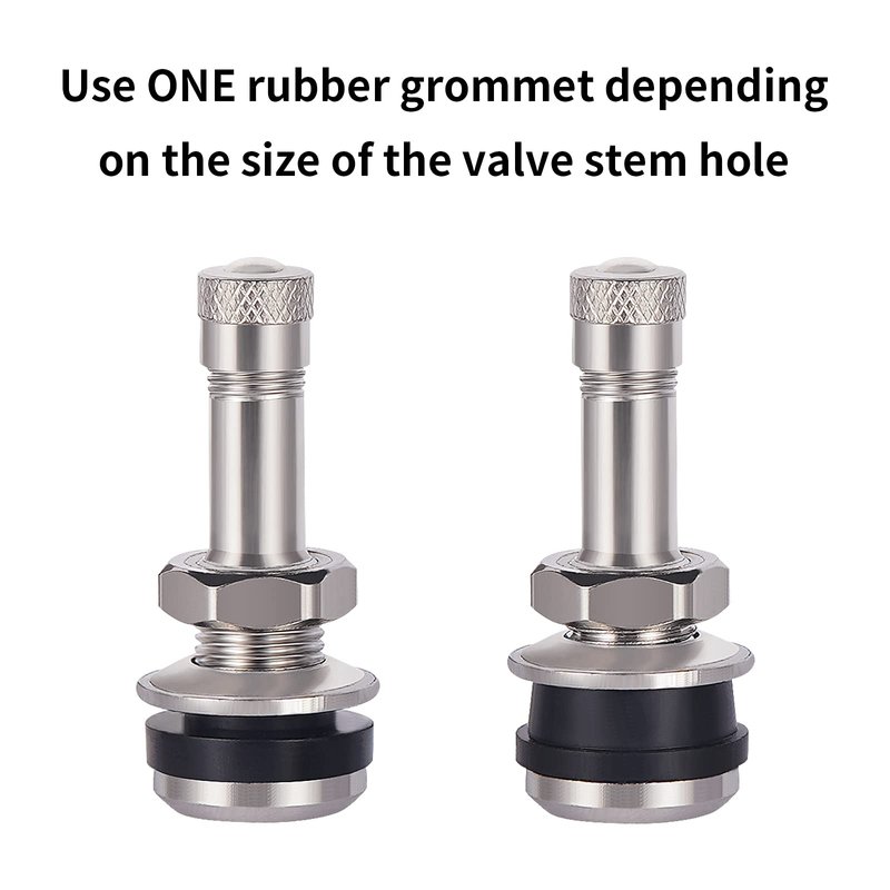 - 2 Types of Diameter Rubber Grommet - Vaincre metal valve stem is suitable for tubeless tire which rim hole 0.453" or 0.625". Choose which one of the black rubber grommet you need. You only use ONE depending on the size of the valve stem hole in the wheel.