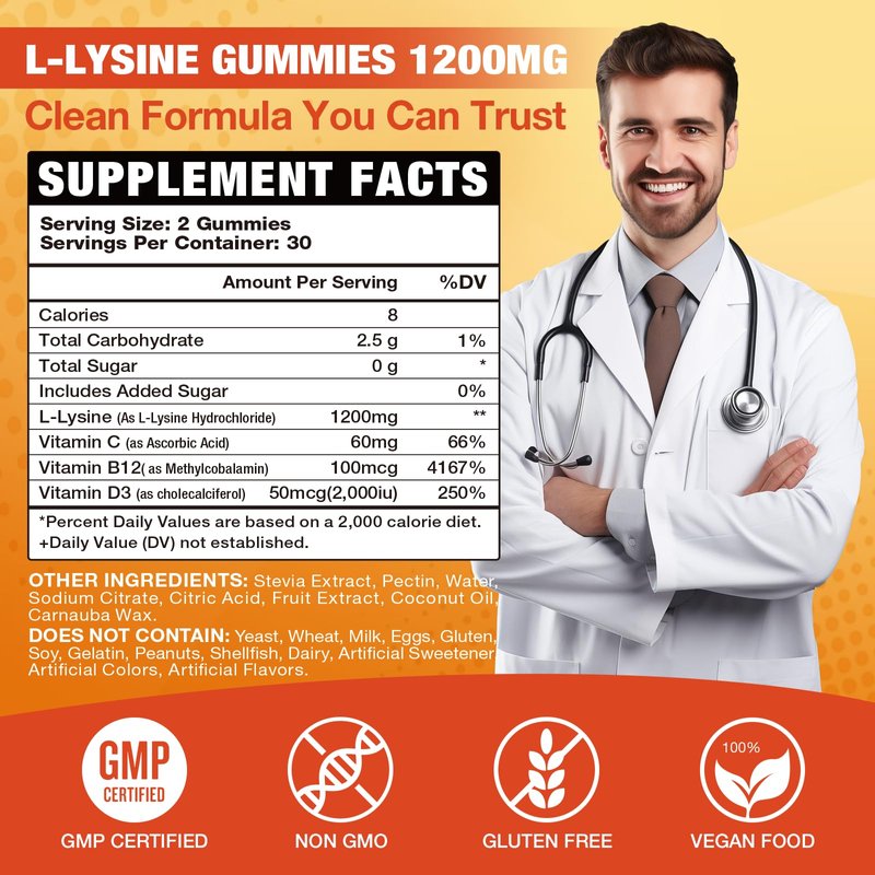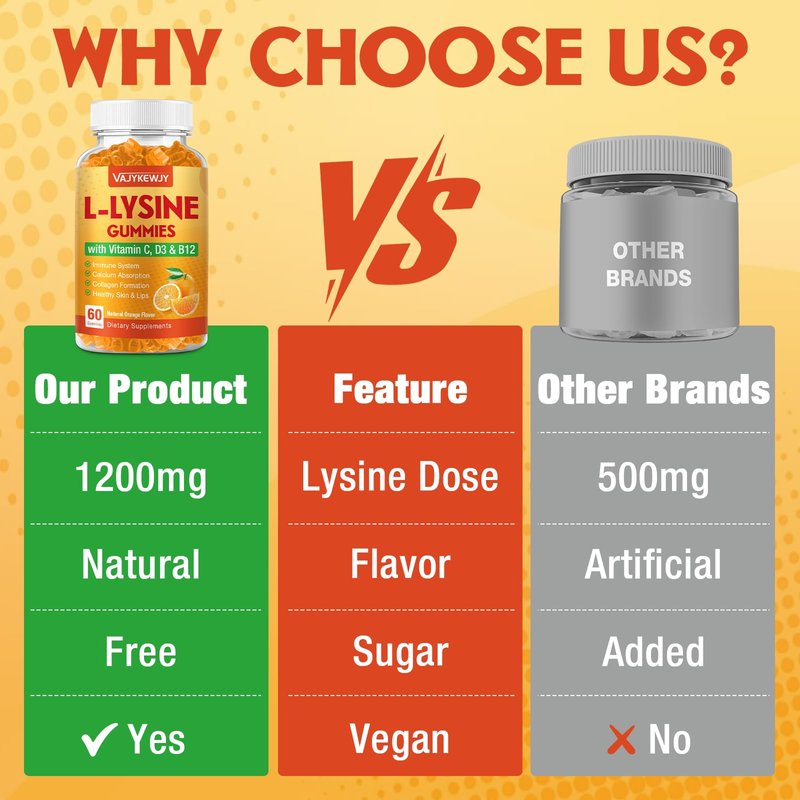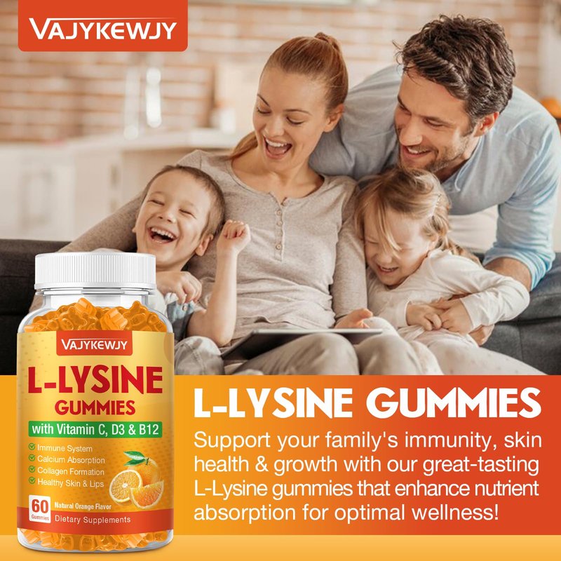 VAJYKEWJY L-Lysine Gummies 1000 mg for Immune Support, Delicious Orange Flavor, Vegan, Non-GMO, Gluten-Free – 120 Count