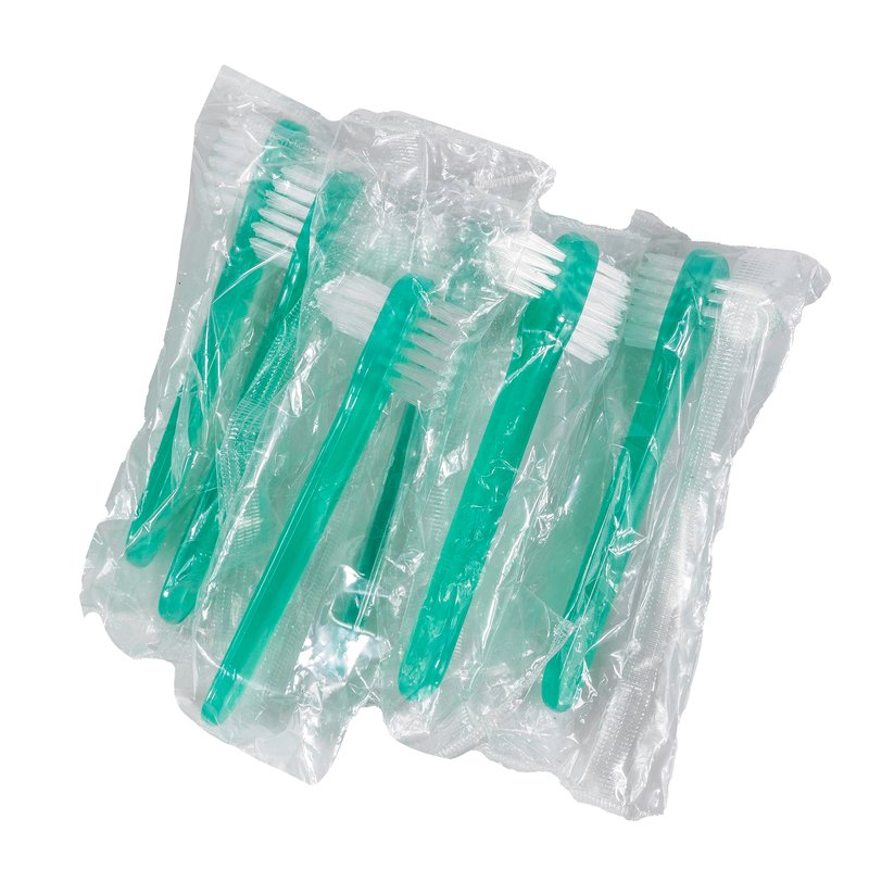 Vakly Denture Brush [Pack of 10] Individually Bagged Denture Brushes with Hard Firm Flat Bristled Heads for Cleaning Dentures, Retainers, False Teeth, Clear Braces, and Mouth Guards