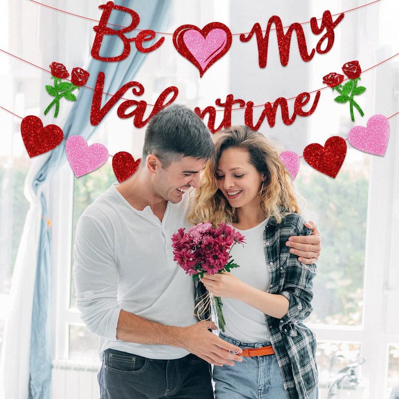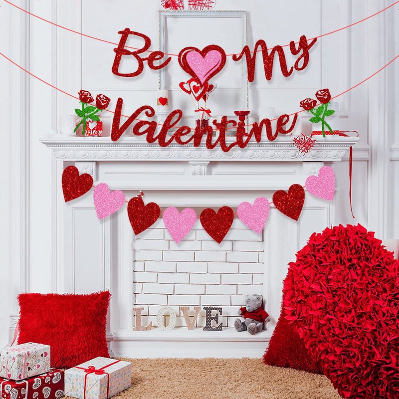 - 💝Good Design Valentine Patterns🌹 The valentine's day banners are designed with "Be My Valentine" words pattern, rose flowers and love heart patterns, Enough to meet your needs of making a holiday decoration.