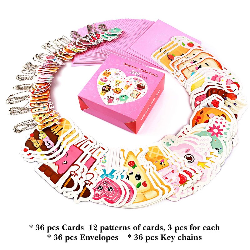 - š36 Cute Valentines Cards & 36 Cute Envelopes - This 36 pack of V-day Cards allows you to pick your favorite design for your favorite person in the classroom, and still have some cards for sending to anyone you like.