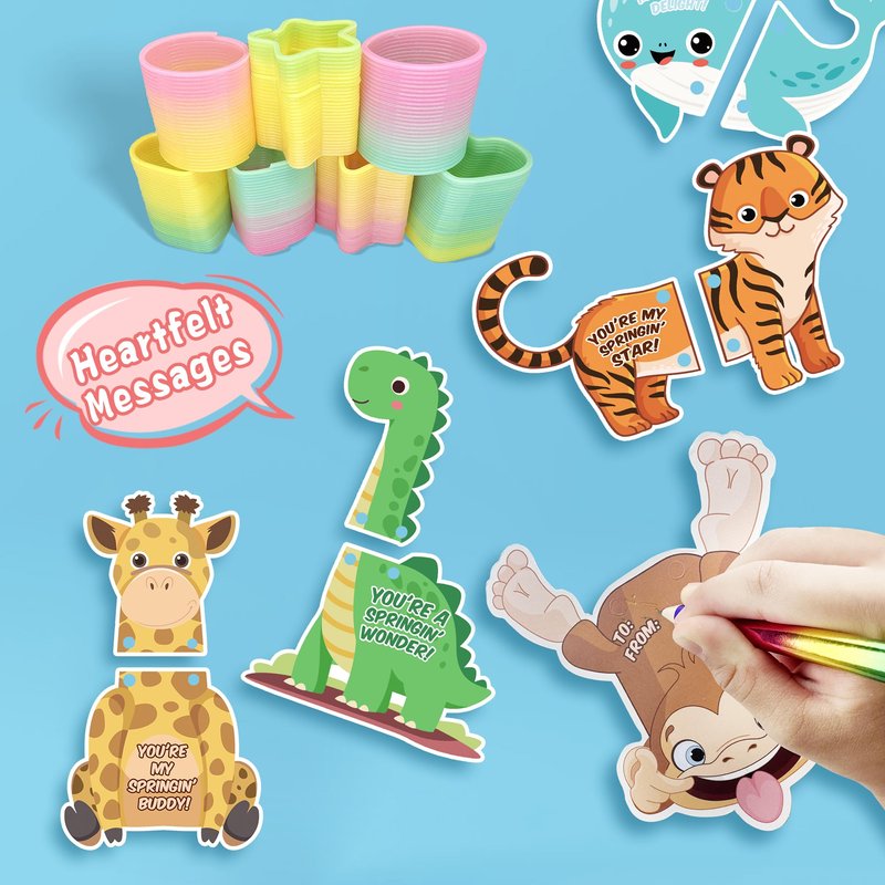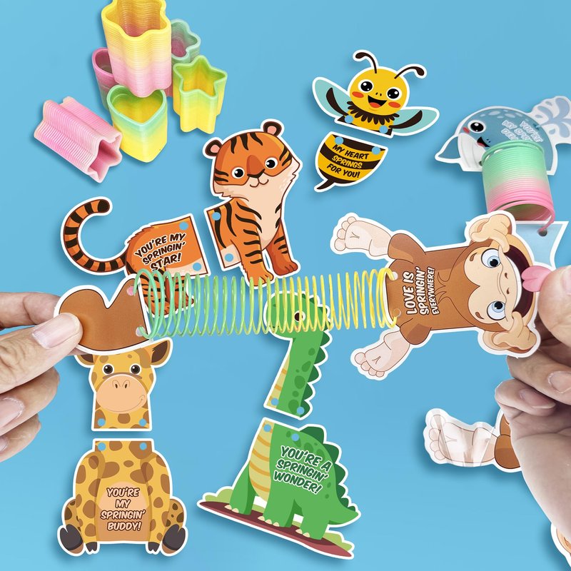 - Novel Valentine's Day Gift: It's fun to stretch these colorful springs and watch them spring right back, which can make you feel less stressed. This Valentine's Day party favor toy will bring joy and happiness to everyone on Valentine's Day. Assembling the cards and toys is a breeze, making it a convenient choice for teachers, parents, and students.