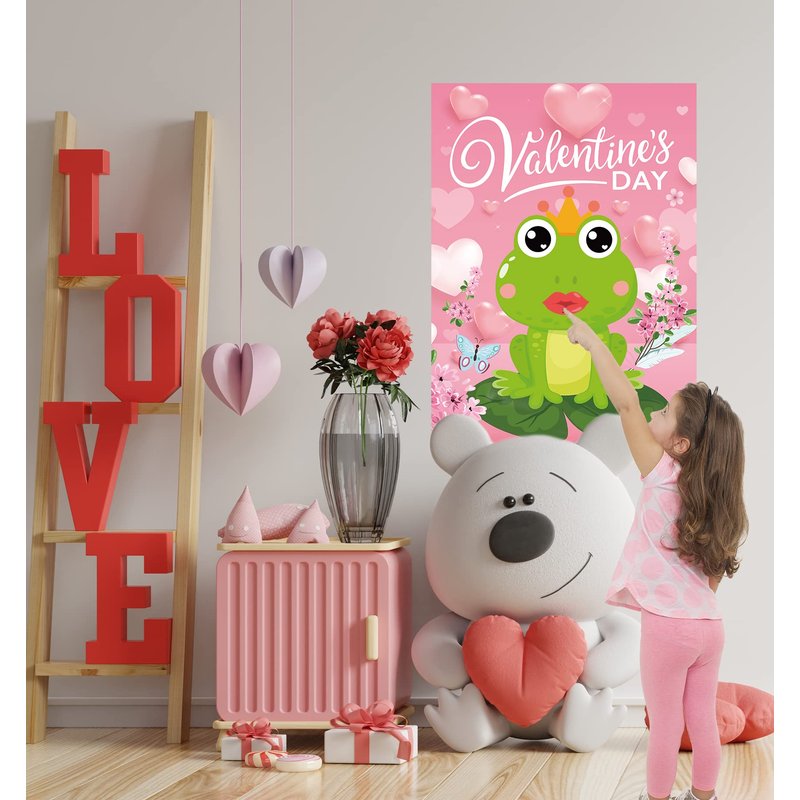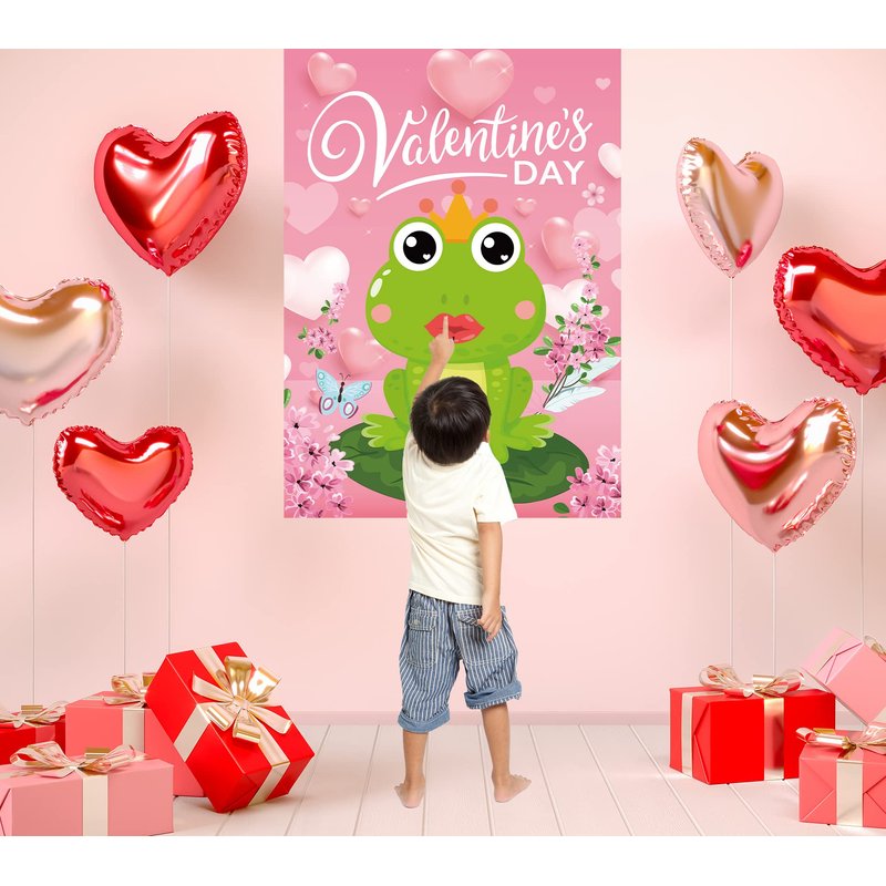 - 【PERFECT GAMES FOR VALENTINE PARTY】: This attractive“Pin the mouth on the frog”valentine party games set, can bought for your kids or students as a nice gift, helping them to hold a funny valentine party full of fun that can easily attract the attention of party guests.