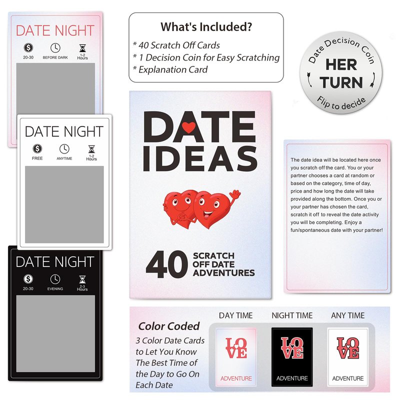 - Fun & Adventure: You'll get many exciting date ideas with our scratch off cards. And that will add an element of surprise and excitement to your romantic adventures